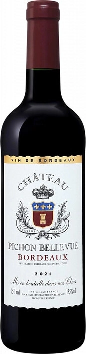 Chateau Pichon Bellevue is a dry red wine made from Merlot and Cabernet Sauvignon grapes, which is grown in the Chateau vineyards between the appellations of Saint-Emilion and Graves, on clay-calcareous soils. The average age of the vines reaches 30 years. The grapes harvested at the moment of optimum maturity are carefully graded and separated from the ridges. After soft pressing, fermentation is carried out in stainless steel containers, followed by maceration. Wine is aged in concrete tanks for at least 6 months. Before bottling, the wine is clarified with bentonite, stabilized and double-filtered using diatomaceous earth and membrane filters. Wine potential is 3-5 years.