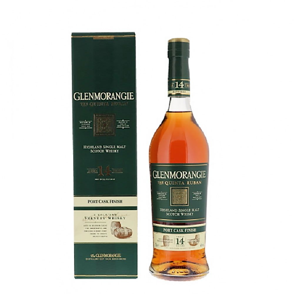 Glenmorangie The Quinta Ruban 14 Years is a bold, velvety Highland single malt known for its deep, ruby-red color and rich “dark chocolate and mint” profile.